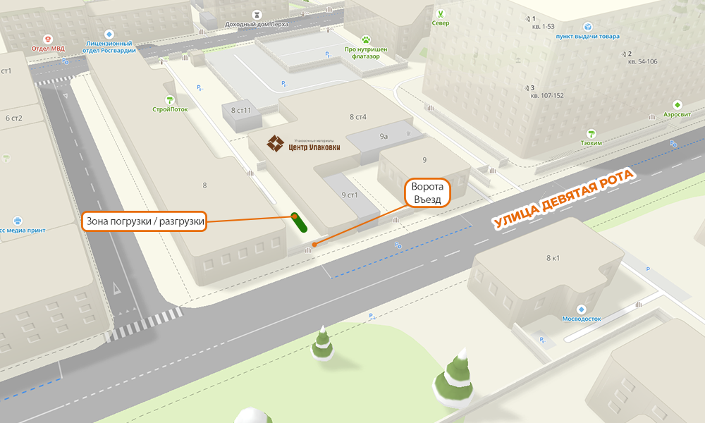 Предварительно звоните и согласовываете въезд с ул. Девятая Рота. Заезжаете если есть места для парковки. Ориентируйтесь на схему ниже.